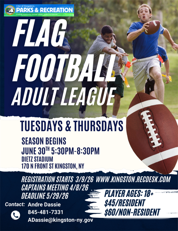 Introducing the City of Kingston's first ever adult Flag Football League - Wednesday, March 4, 2026